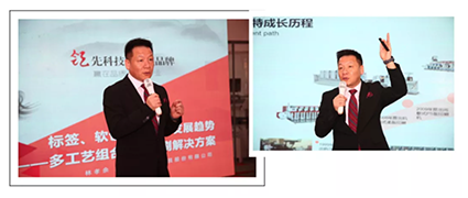 這款可實(shí)現(xiàn)膠印、柔印、凹印、絲網(wǎng)、冷燙金等組合印刷的多功能卷筒紙印刷機(jī),不僅適用于各類型標(biāo)簽的印刷, 還可嘗試包裝印刷,林孝余先生為現(xiàn)場(chǎng)的來(lái)賓展現(xiàn)了中特之星SMART-420用于香飄飄、面膜等包裝印刷的成功案例,并提出標(biāo)簽、軟包行業(yè)印刷發(fā)展趨勢(shì)—多工藝組合智能印刷解決方案。▲浙江中特機(jī)械科技股份有限公司 林孝余先生廣州星創(chuàng)自動(dòng)化技術(shù)有限公司總經(jīng)理陳煥澤先生以《星創(chuàng),助力標(biāo)簽印刷智能化發(fā)展》為主題發(fā)表演講。